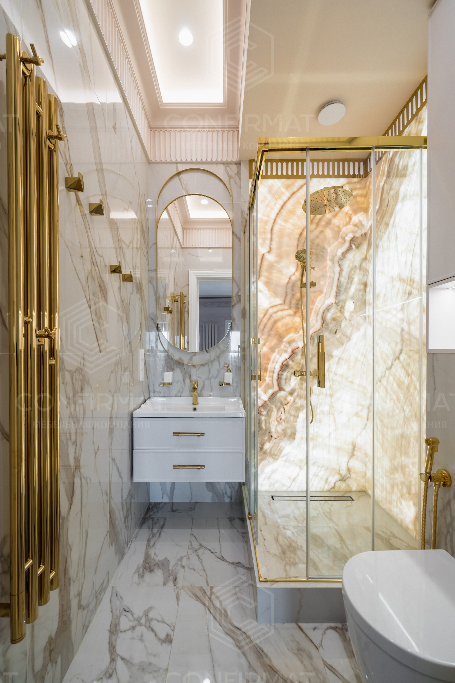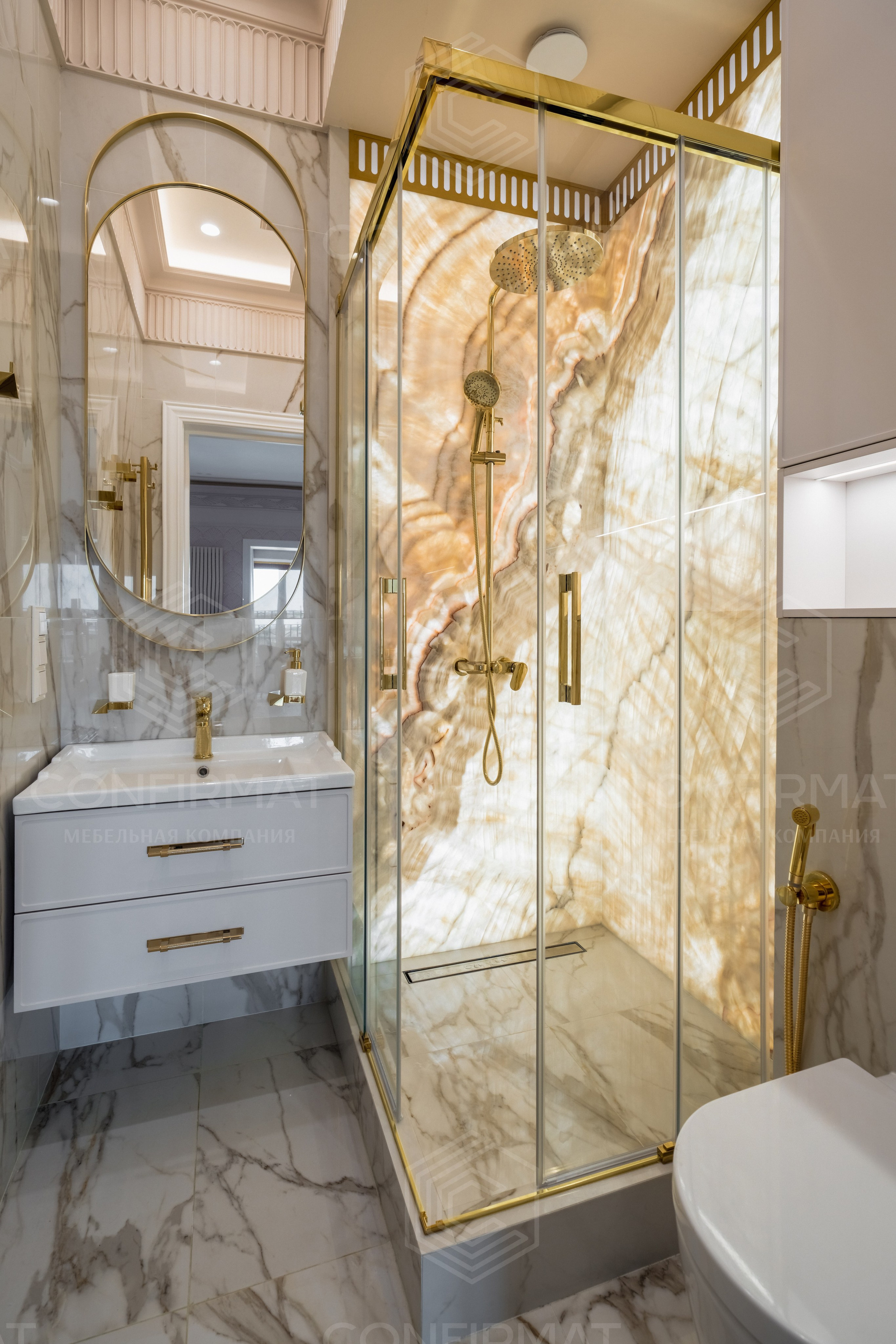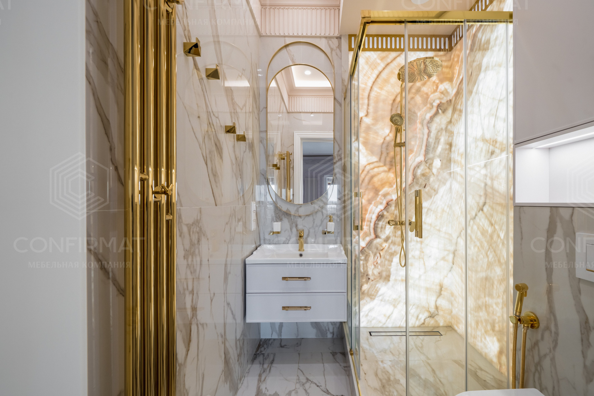 Натуральный оникс подходит для оформления интерьера ванной комнаты. Камень из группы кварцев не впитывает воду, хорошо переносит перепады температуры и влажности, что подходит для условий ванной.