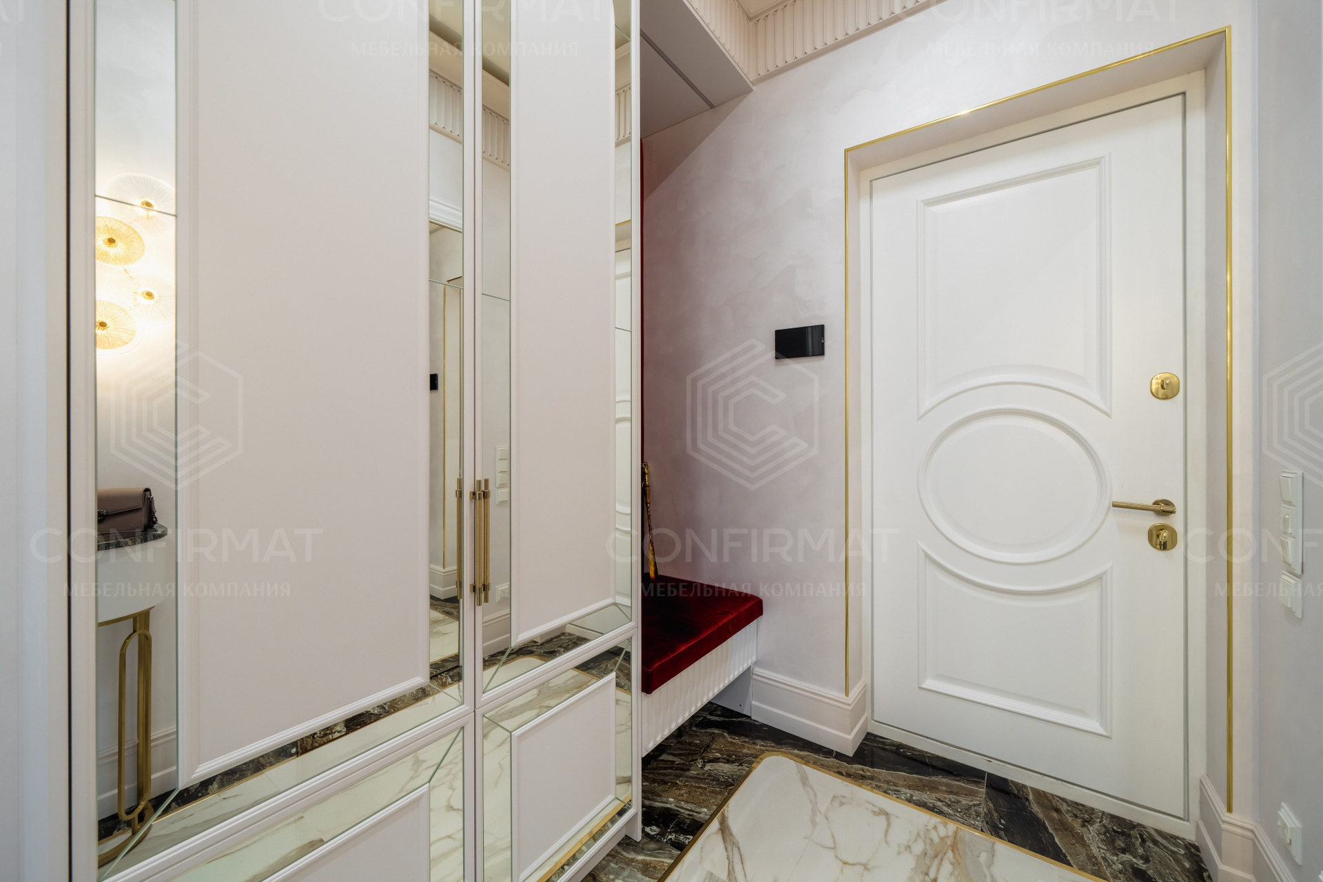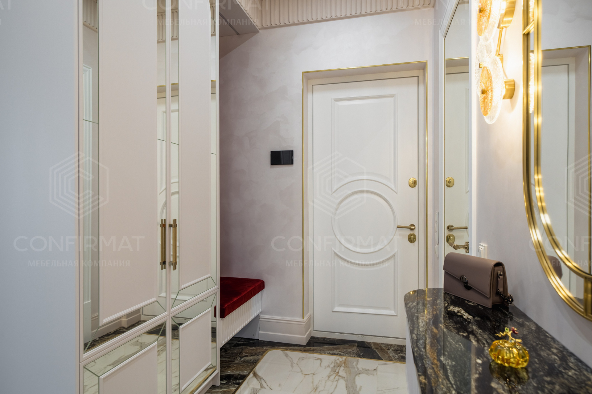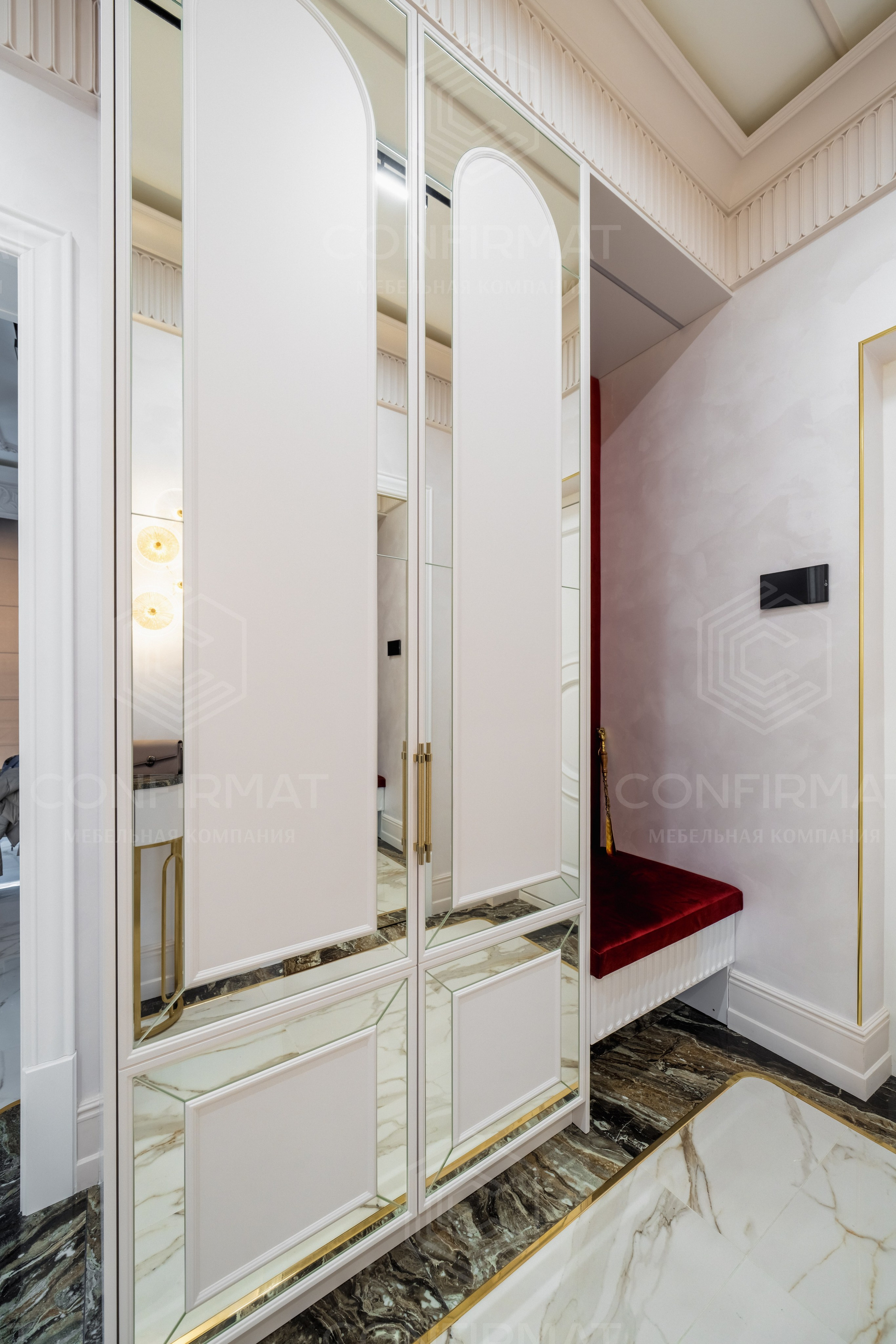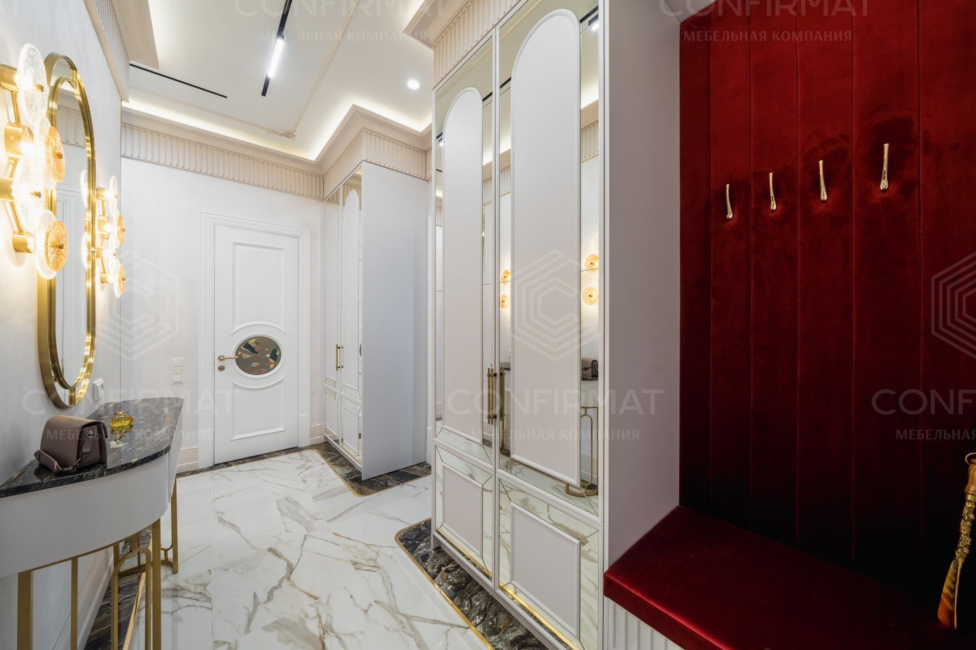 Неоклассический стиль больше подходит для просторных прихожих, но даже если помещение небольшое, можно использовать дизайнерские приёмы, чтобы визуально его расширить.